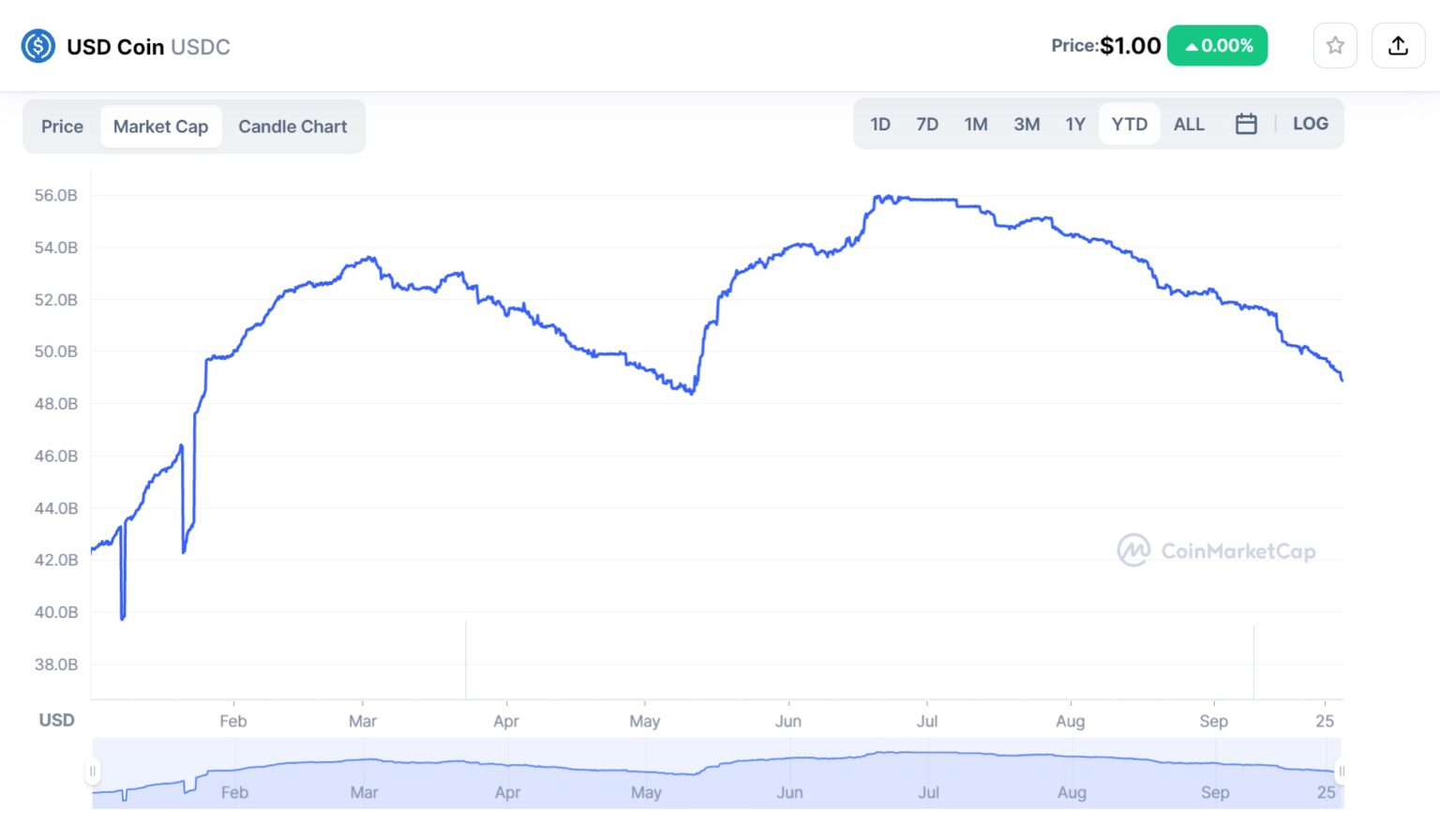 Market Capitalization of USDC from Early 2022 to Present, Screenshot from CoinMarketCap on 29/09/2022