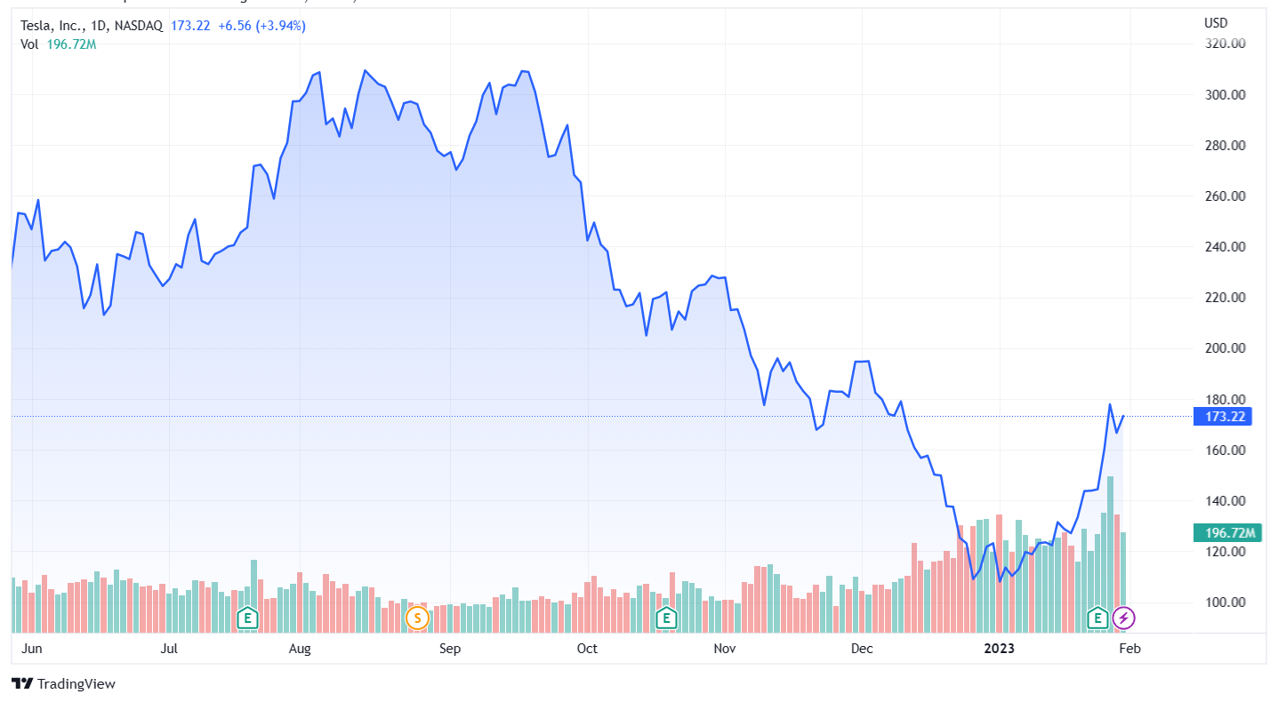 TSLA Stock Price Trends from June 2022 to Present. Source: TradingView