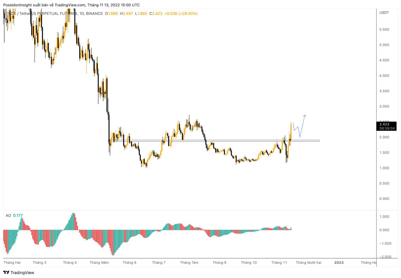 1D Chart of DYDX/USDT on Binance Futures, Screenshot from TradingView on the evening of 11/20/2022
