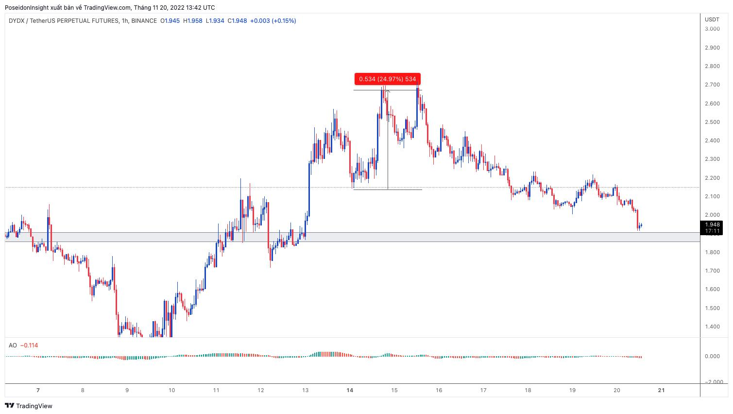 1H Chart of DYDX/USDT on Binance Futures, Screenshot from TradingView on the evening of 11/20/2022