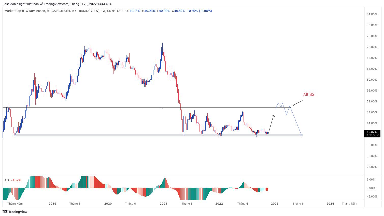 Bitcoin Dominance Chart, Screenshot from TradingView on the evening of 11/20/2022