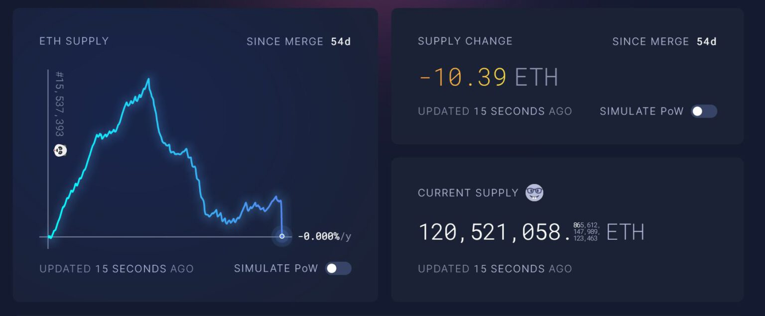 As of the morning of November 9th, Ethereum's network has first achieved a deflationary state since The Merge, according to data from Ultrasound.money. Specifically, the circulating supply of Ethereum as of this morning is 120,521,000 ETH, matching the level on September 15th, the day of The Merge.