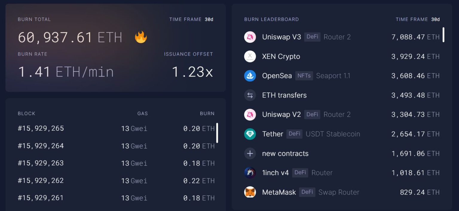 In the past 30 days, Ethereum has burned nearly 61,000 ETH, primarily from DeFi applications like Uniswap, MetaMask, and 1inch, as well as stablecoins USDT and USDC, and NFT platforms like OpenSea.