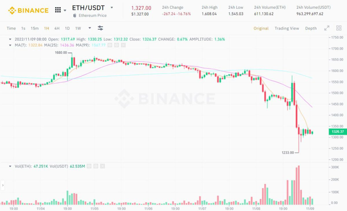 ETH's price has shown little reaction to the news, as it is still stabilizing after a dramatic dump early on November 9th.