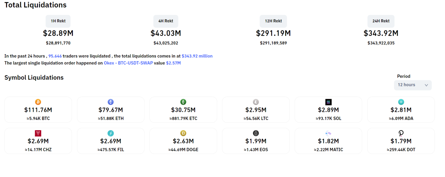 According to liquidation data, nearly $300 million in derivative positions were liquidated in the last 12 hours, primarily affecting BTC, ETH, and Ethereum Classic (ETC) — an altcoin that has surged recently due to The Merge hype. Long positions accounted for 84% of the liquidations.