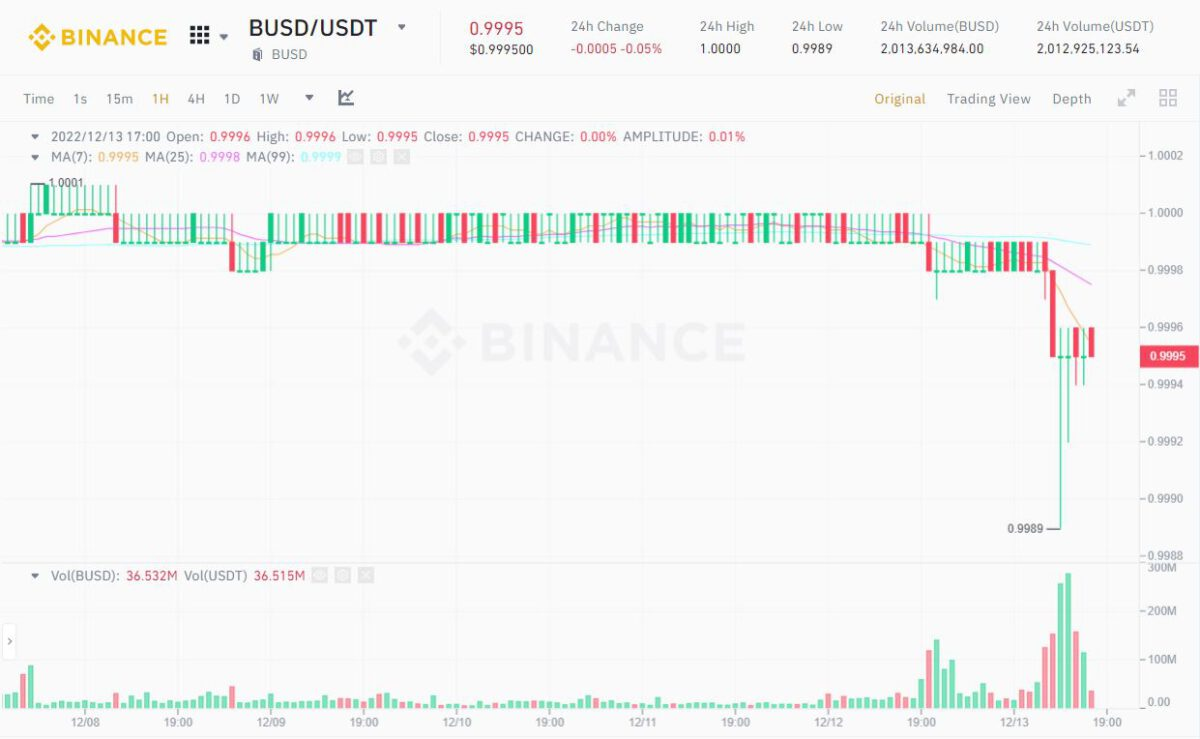 1H Chart of BUSD/USDT on Binance as of 05:30 PM, December 13, 2022