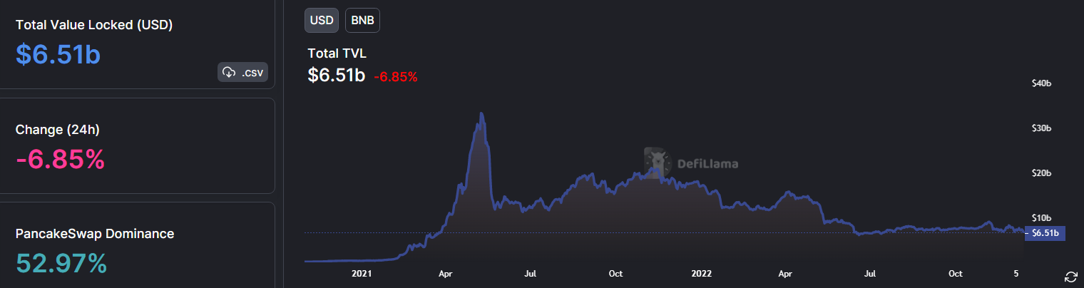 Total Value Locked on BNB Chain as of 05:00 PM, December 13, 2022