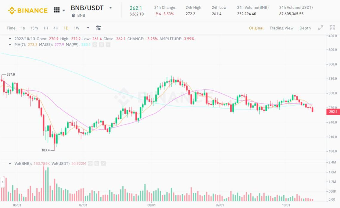 1D BNB/USDT Chart on Binance at 05:25 PM on October 13, 2022