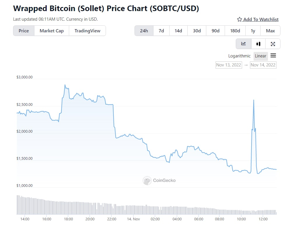 The Wrapped Bitcoin on Sollet has traded at a 10x discount compared to the market price of Bitcoin (BTC).