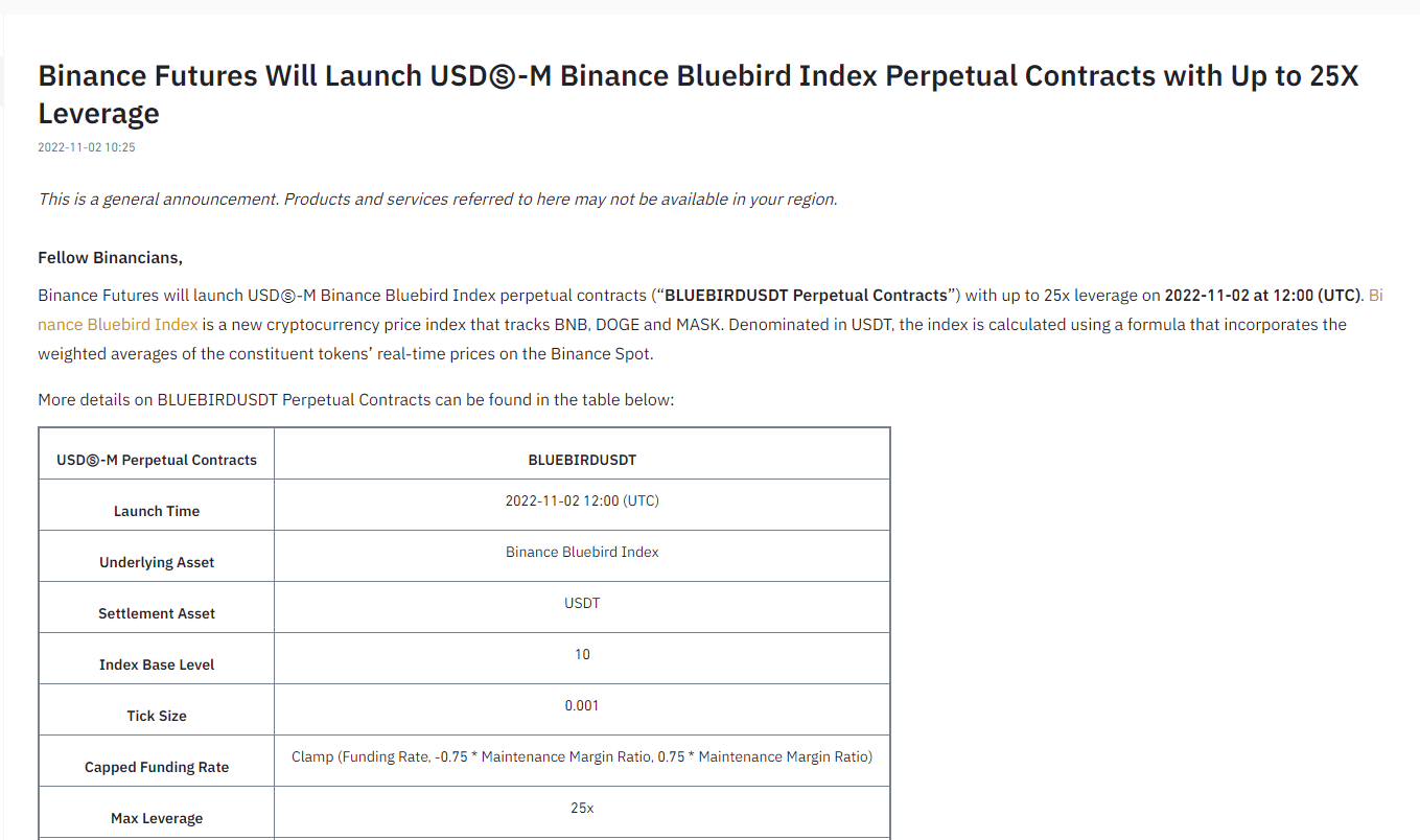 Binance Launches Leveraged Futures x25 for BLUEBIRD