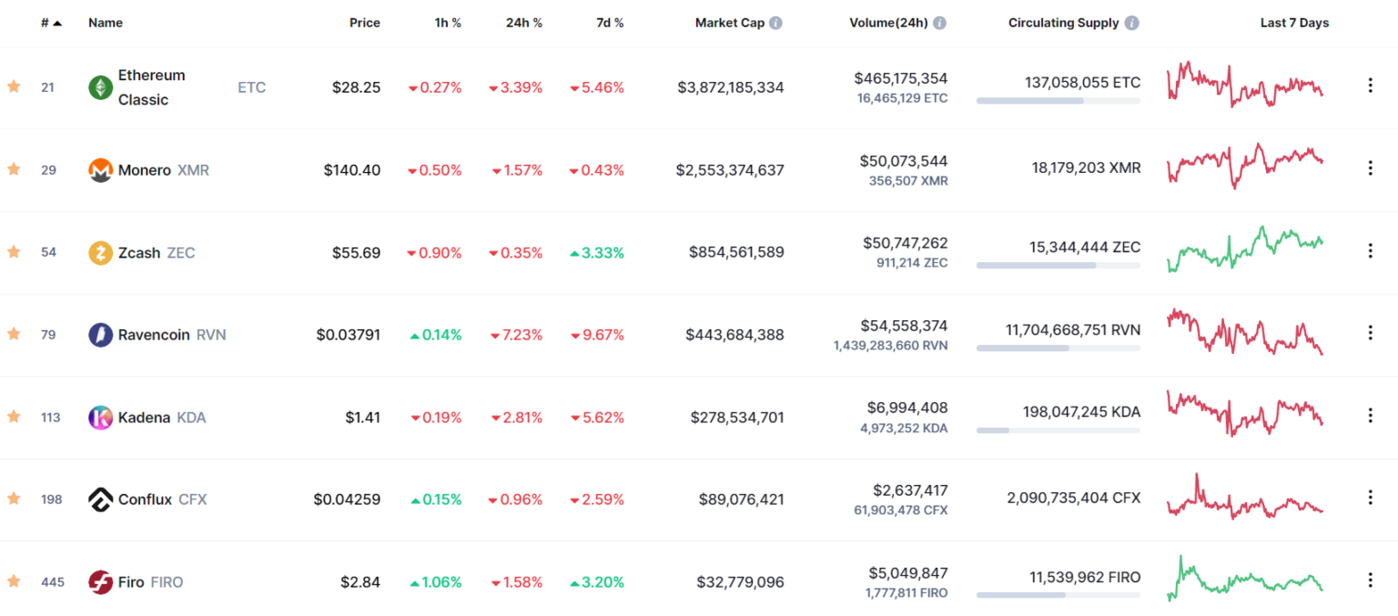 While it seemed like a perfect scenario for PoW coins, it has mostly turned out to be a temporary wave. Most PoW coins have experienced sharp declines of 30-40% within days of The Merge. In the past week alone, this group has continued to drop by an additional 3-5% on average.