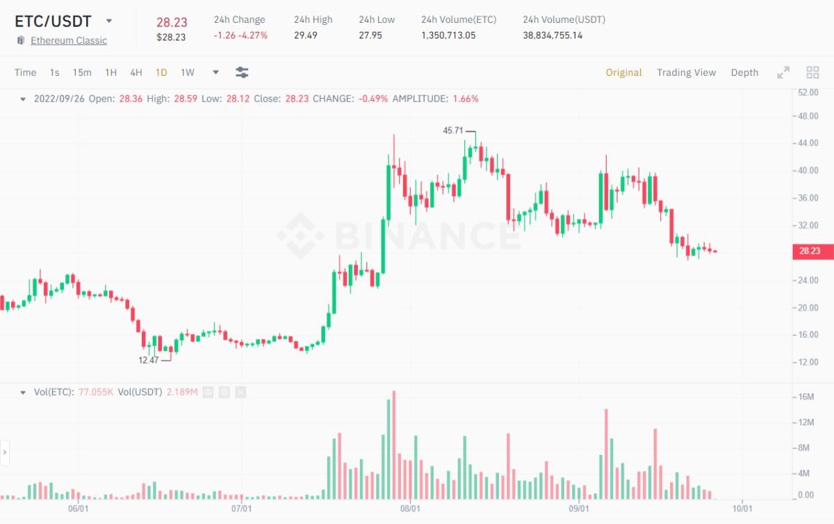Among these, Ethereum Classic (ETC) stands out. According to data from 2miner, ETC's hashrate peaked at a historic level of 306.68 TH/s on September 15, 2022, with the price of ETC reaching an impressive $41.8, nearing its August 2022 high of $45.71.